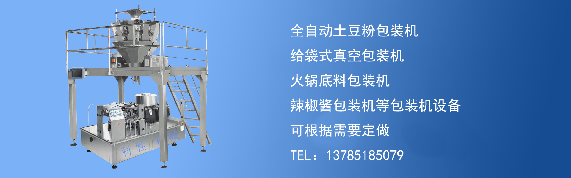 產品如:自動包裝機、火鍋蘸料包裝機、火鍋底料包裝機、火鍋底料包裝機、土豆粉包裝機、枕式包裝機、真空包裝機、粉劑包裝機、顆粒包裝機、折紙機、封尾機、灌裝機、電磁感應封口機、貼標機等產品已在日化、食品、 潤滑油等行業使用。